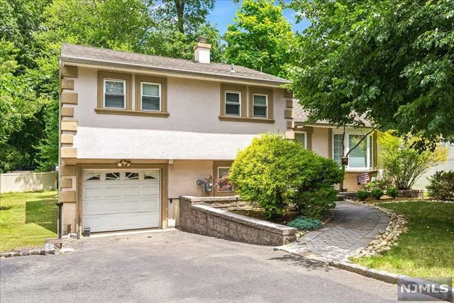 Welcome to this charming split-level home on an oversized lot with trees lining the perimeter for added privacy. Step into the bright living room featuring vaulted ceilings, a skylight, a bay window, hardwood floors, custom paint, and recessed lights. The heart of the home is the inviting open floor plan kitchen, seamlessly connected to the formal dining room and extending out to the large rear deck, perfect for entertaining and enjoying the serene outdoor space. Upstairs, you'll find three spacious bedrooms, each offering comfort and ample natural light. The lower level features a large den, convenient laundry room, and a private office, providing versatile spaces for relaxation and productivity. This home boasts a mix of stucco and vinyl siding, complemented by a 2-car width blacktop driveway and an attached garage. Located close to transportation, parks, and schools, it offers tranquility and convenience in a sought-after neighborhood.